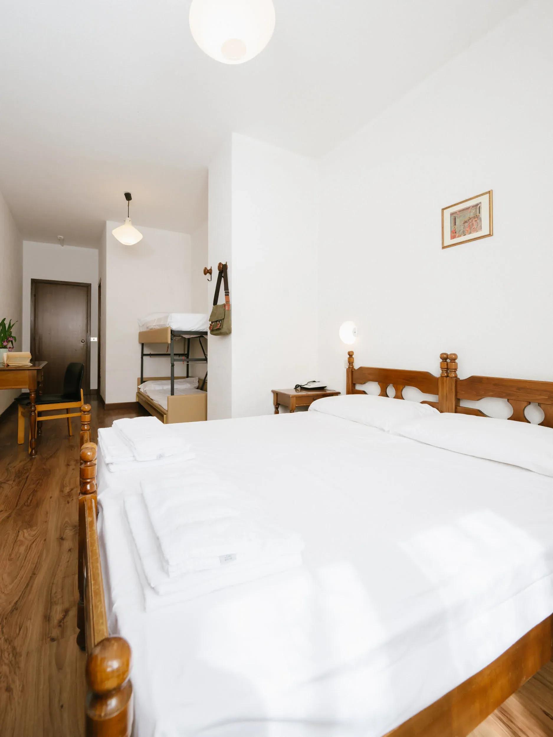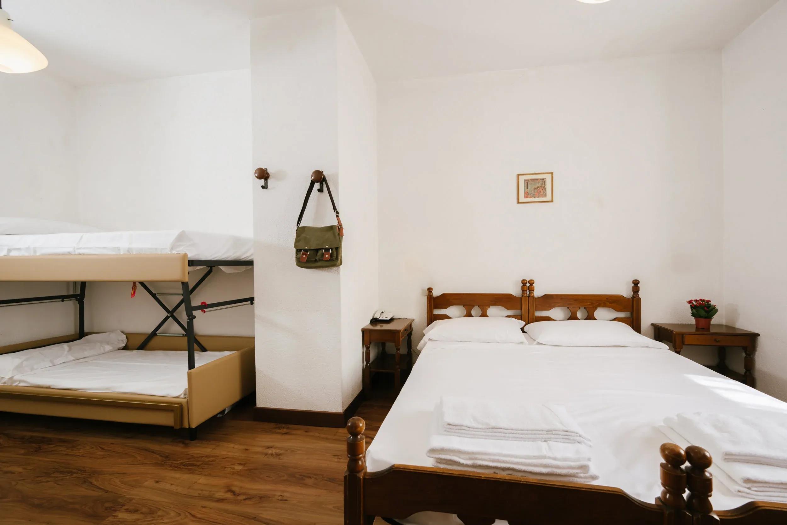 Questa camera matrimoniale, fino a quadrupla, regala un balcone con vista mozzafiato sulle montagne, ideale per chi desidera comodità e libertà in due, ma perfetta anche per condividere momenti speciali con la famiglia o amici.